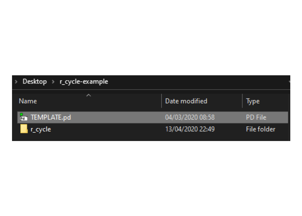 Next, create a new folder for housing your patch or patches. This way, you can create a self-contained project you can load onto other machines or send to friends. Copy the whole r_cycle folder to this folder. Next, duplicate the TEMPLATE.pd file and give it a new name — SAMPLESLICER.pd or whatever you’re building.