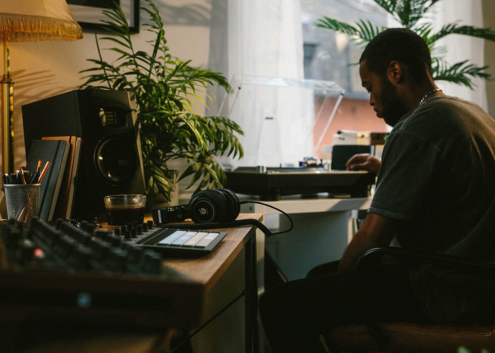 “I didn’t have the capital to invest in instruments,” he explains. “I started with a free version of Logic and a computer. I had turntables and records handed down to me by family or friends. I worked a minimum wage job and spent my entire day wages on my lunch break record shopping.”