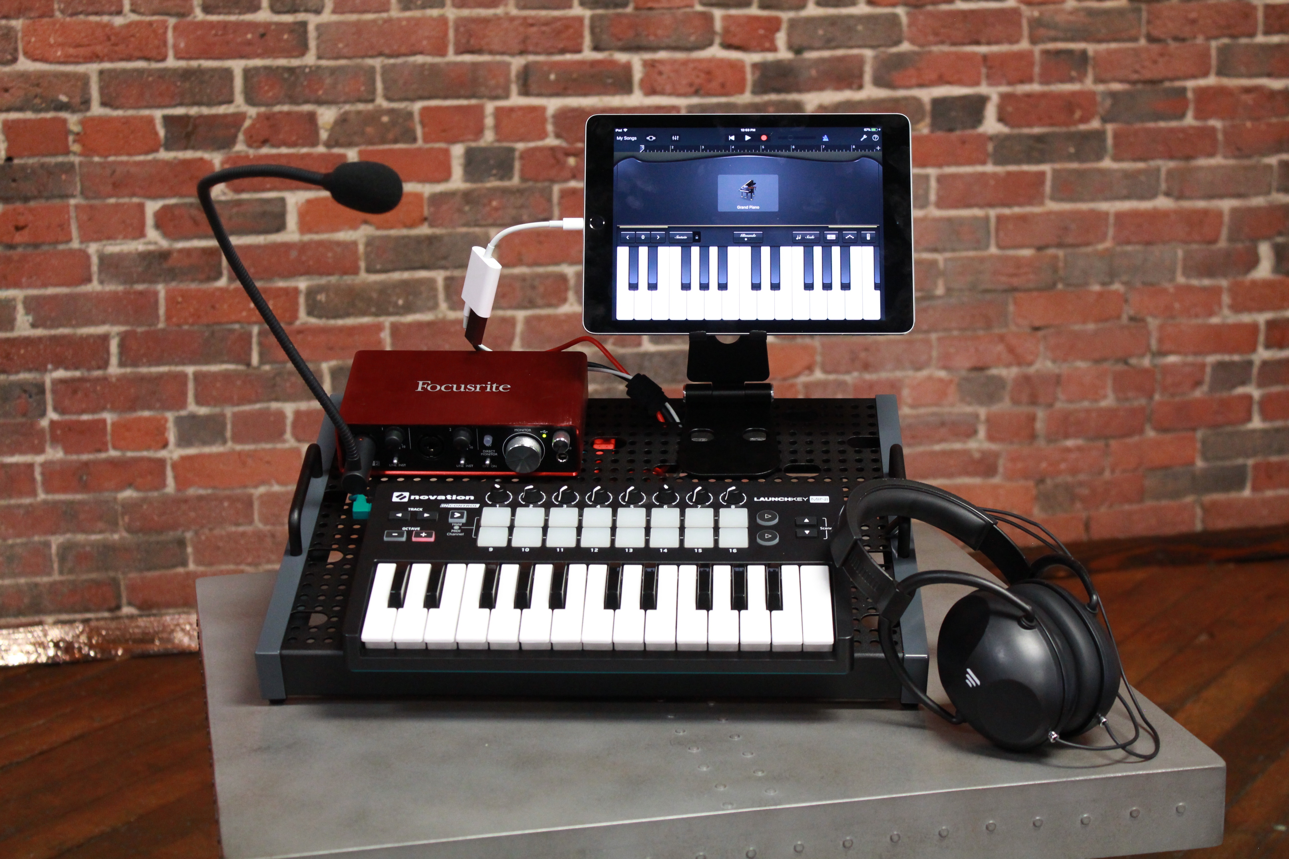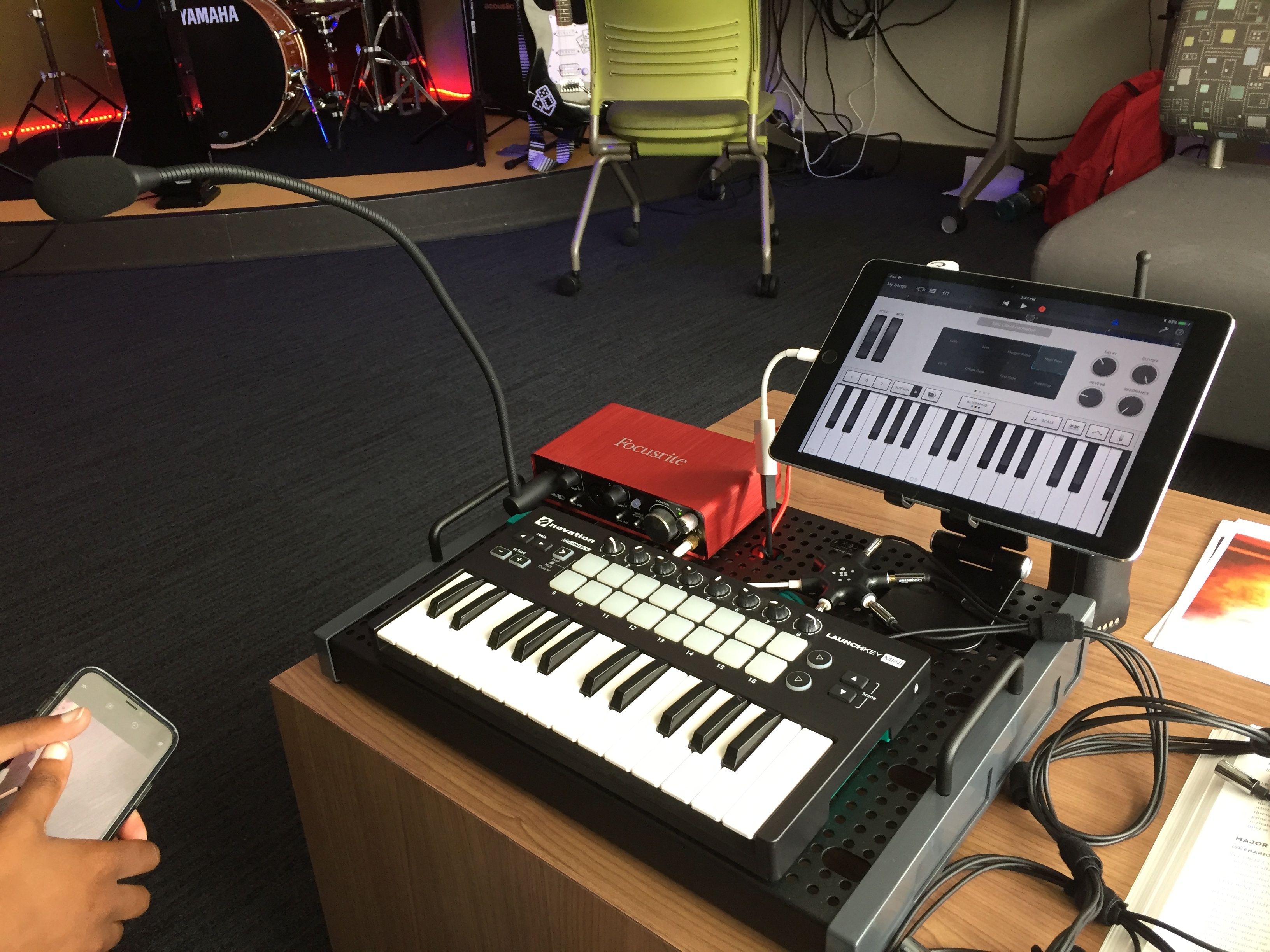 A Mobile Studio setup employed by the Music & Youth initiative, featuring gear from Focusrite and Novation.