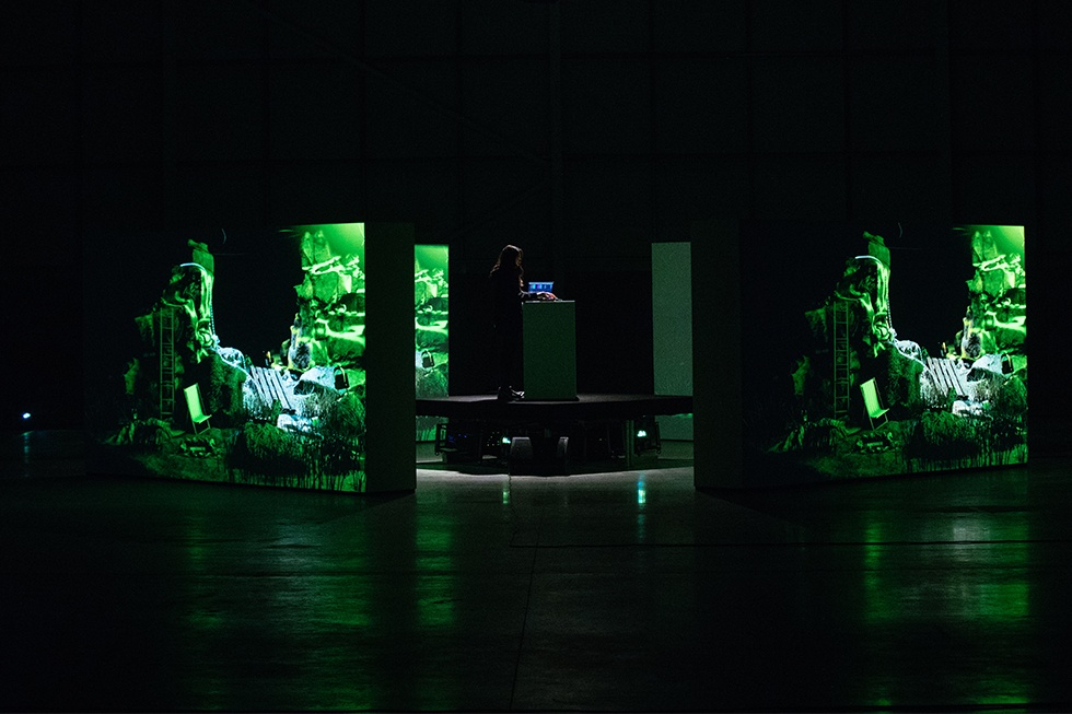 Having established a shared vision, the duo tend to collaborate at arm’s length, with Ikonika bringing the concept and Leo coming up with a visual response without much further direction. Their existing creative bond was even more crucial to the end result of this collaboration, with the clock ticking as they raced to come up with a complete audiovisual experience. “We had to go into it not overthinking — making decisions and not knowing exactly why we were making them,” explains Leo. “Spontaneity was a big thing. I really like working like that.” Ikonika remembers it more starkly. “I told him, just do what you want, don’t listen to me. But we’ve worked on live AV before and we’ve got to that stage where we can trust each other.”