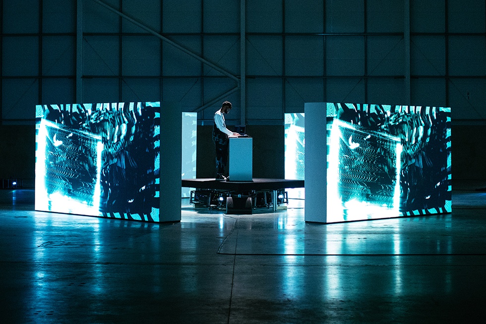 For North Londoner AyChibs, whose multi-purpose CV includes music production and animation as well as graphic design and DJing, the creative process is like pointing several torches at the sculpture at once. With his visuals responding to the rhythmic shapes embedded in Ashley’s maximalist composition, the performance reflects his ability to think musically and visually in the same moment. “I was bouncing off your track,” Chibs tells his collaborator. Working with someone else isn’t about compromise, he explains, but about “understanding what each person wants. It’s not a matter of me trying to please what they want, it’s about them coming to me for what I do too.”